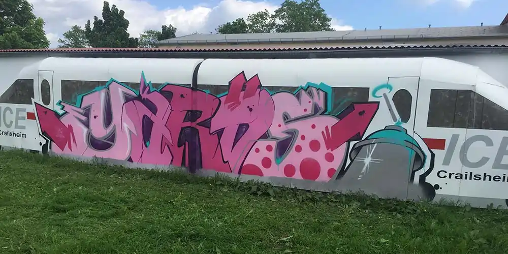 Traveling with the Deutsche Bahn Schönes‑Wochenende‑Ticket for 15 marks, I spent countless weekends on the rails—heading to Stuttgart, Heidelberg, Mannheim, Frankfurt, and Wiesbaden. Those trips were all about reaching the local Halls of Fame, meeting writers, and painting new walls in every city I could reach.