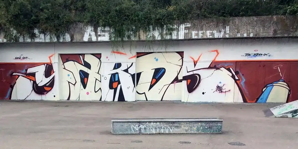 My first real encounter with graffiti began with an exchange in Pamiers, where JOMER’s tags opened my eyes to a new visual language. Not long after, in 1993, a TOO STRONG concert at the Youth Center hit me with the full force of hip hop culture. Outside, a wall painted by ATOM, MASON, and SHARK showed me what style could look like in its purest form. Around the same time, hardcore energy arrived from New York City when MADBALL and CROWN OF THORNZ played the same small venue. Those moments fused music, attitude, and graffiti into one defining spark.